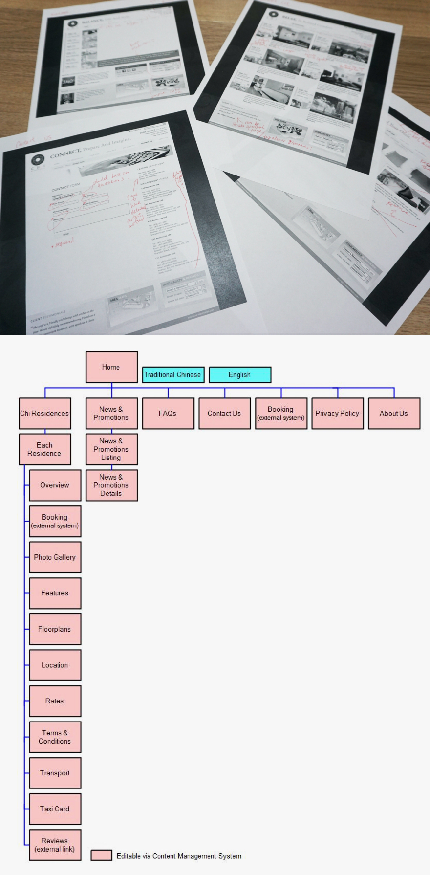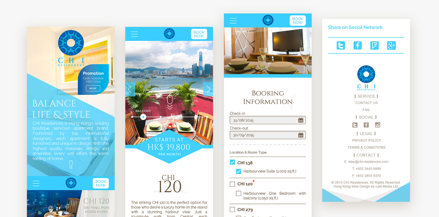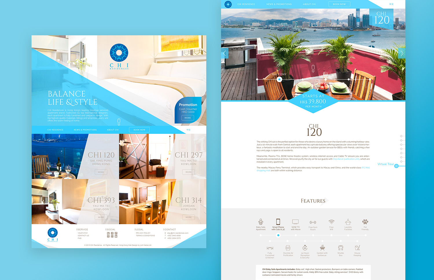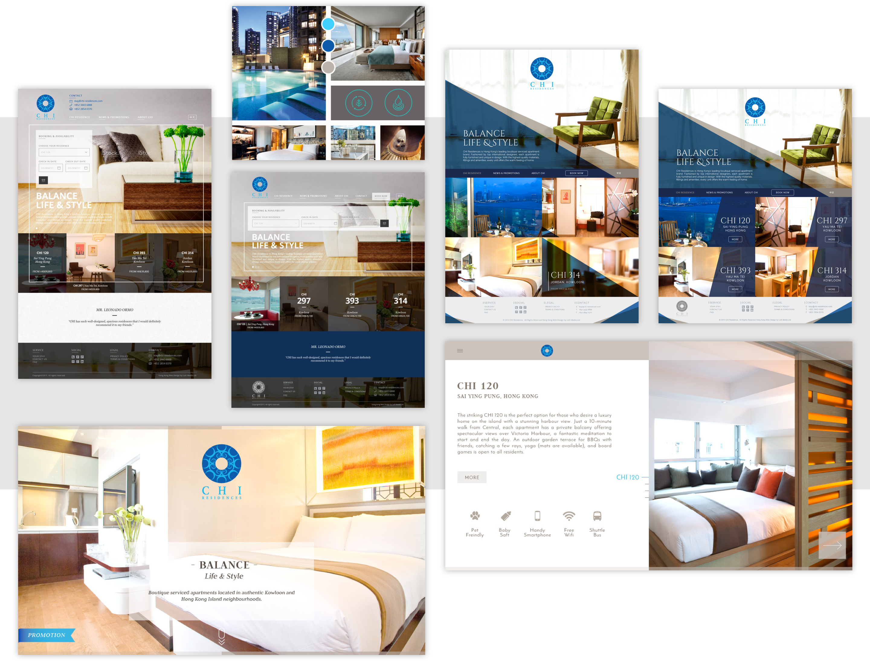 We created several homepages and mood board for building the art direction. After discussion with the client, we decided to revamp the website with big photos and picked a lighter blue color for CHI Residences’ new branding. We suggested that we can improve the booking rate through redesigning the booking workflow, information on the campaign or promotions, rearranging the department’s information page with beautiful photos, better information architecture, and 360-degree virtual tours.